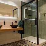 تحتوي الشقة أيضًا على حوض الاستحمام والدوش.